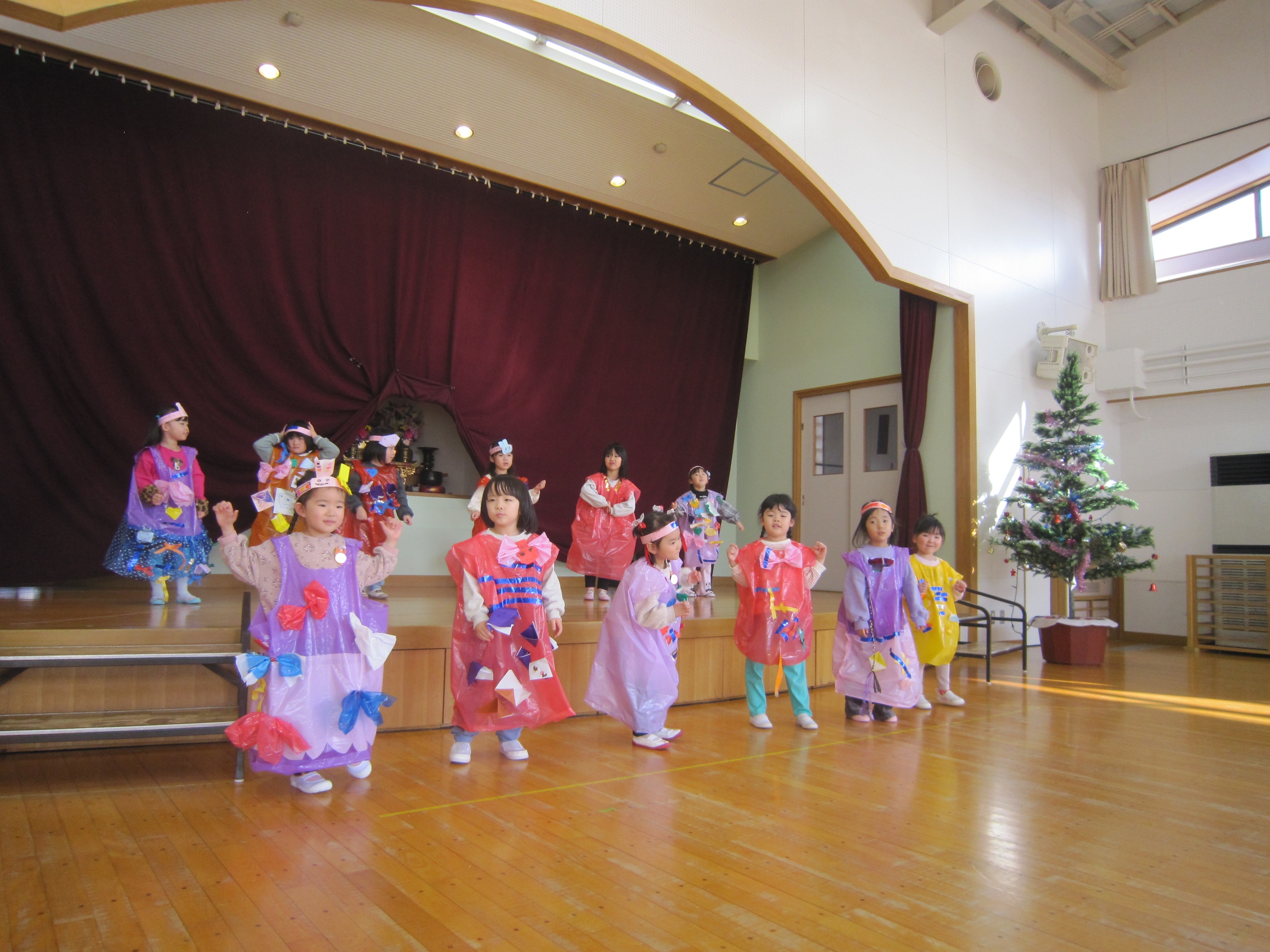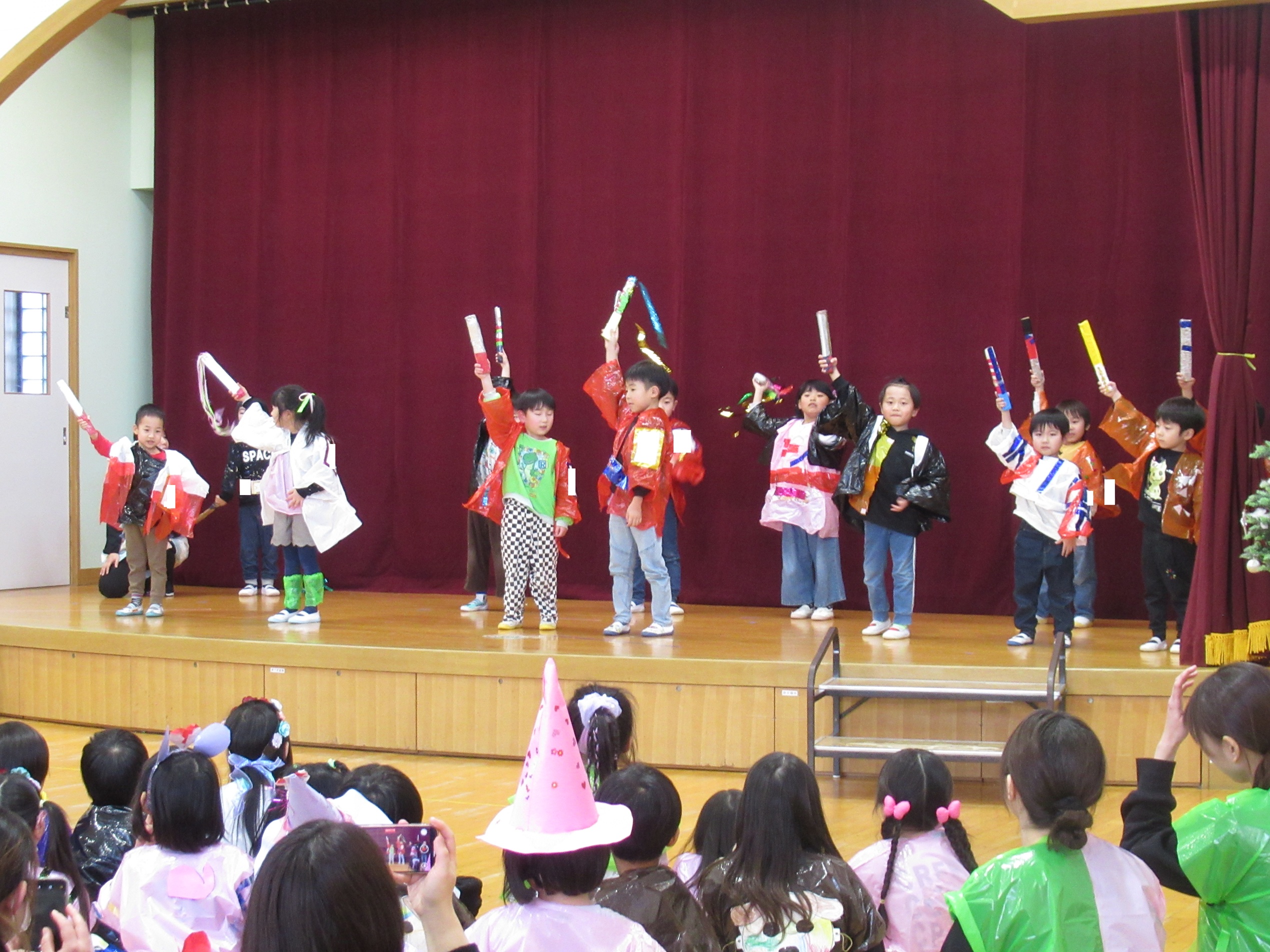 踊り「かわいいだけじゃだめですか」では、子どもたちが自分で折り紙でハートやリボンを作ったり、キラキラテープを貼って作った世界に1つだけの素敵な衣装を着て、アイドルになりきり、元気いっぱい楽しみながら踊る姿がとてもかわいらしかったです。曲の途中でお家の方の周りをファッションショーをしながら歩き、とても盛り上がりました!笑顔で堂々と発表する姿に成長を感じ、感動しました。