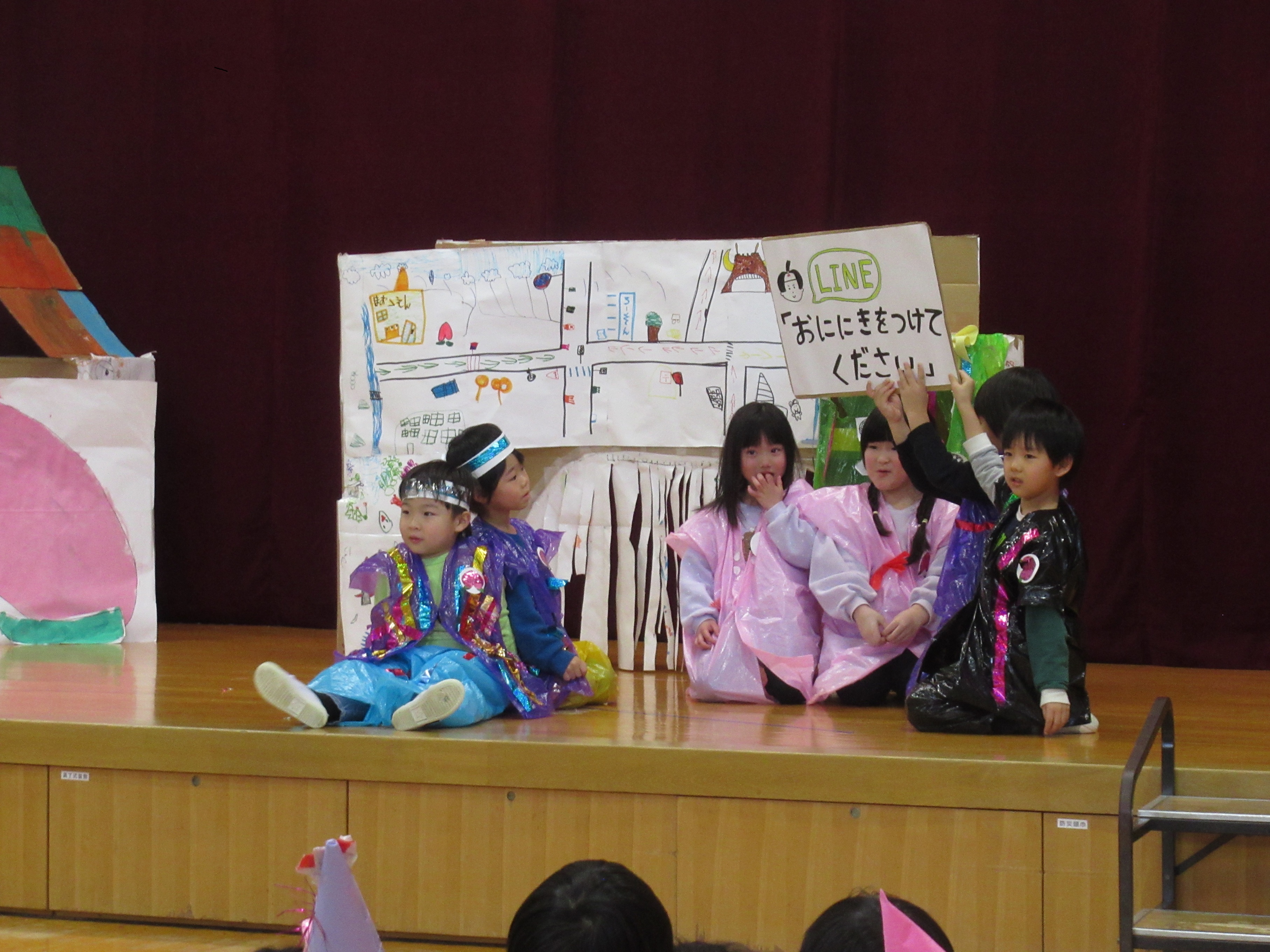 人前に出ることが苦手なお友だちも多いもも組ですが“ひとりじゃできないけど、みんなとならやりたい!”と自分の気持ちと葛藤しながら、当日も頑張っていました!発表を終えると、緊張していた表情がほっとした表情と笑顔に変わり、達成感や成長を感じる瞬間でした。