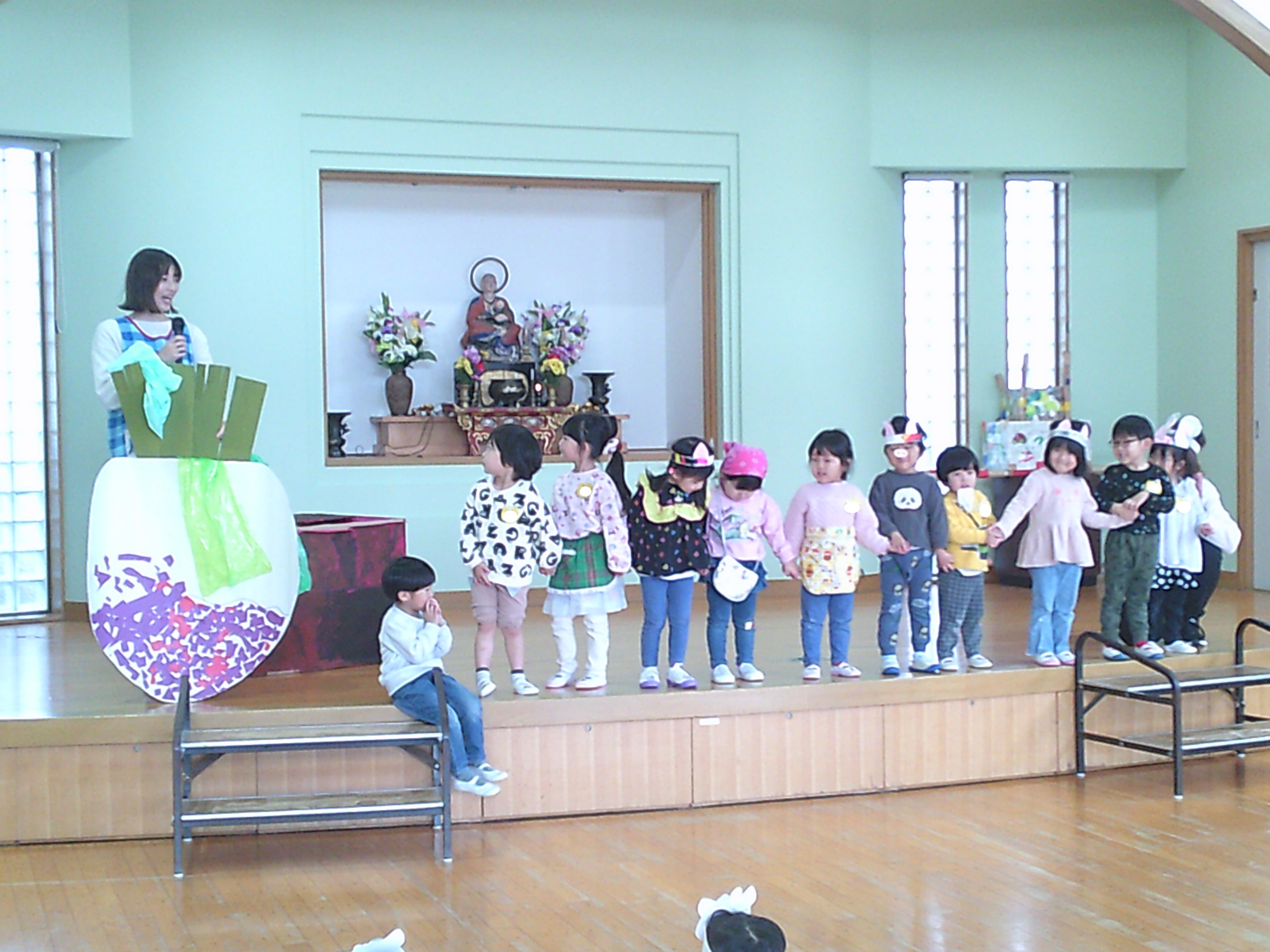 たんぽぽ組は、大好きな絵本の“おおきなかぶ”のキャラクターになりきって劇あそびを発表しました!