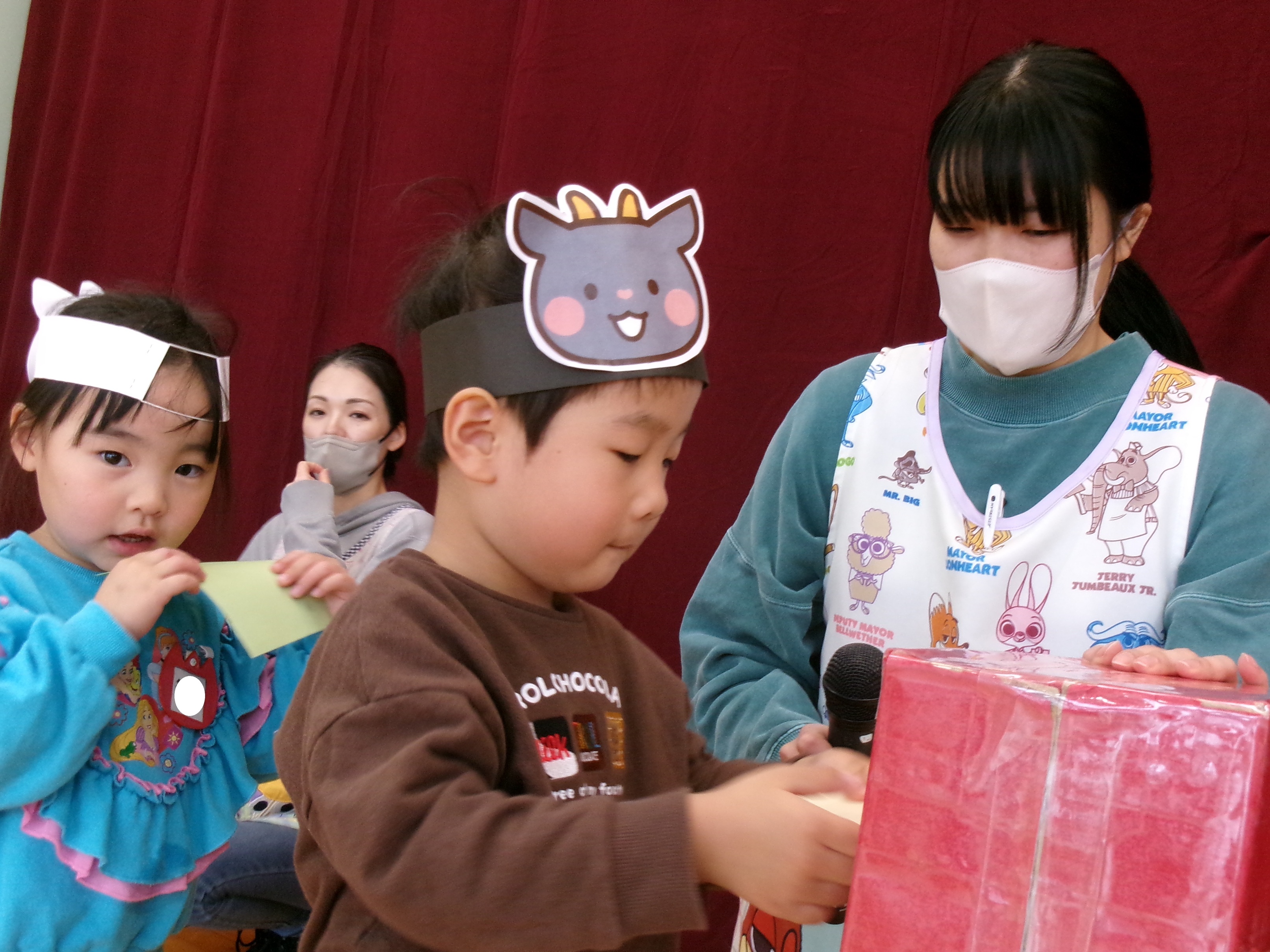本番はドキドキしている様子の緊張した顔のお友だちもいましたが、大きな声でセリフを言ったり、歌ったりして、大成功のお楽しみ参観でした♪