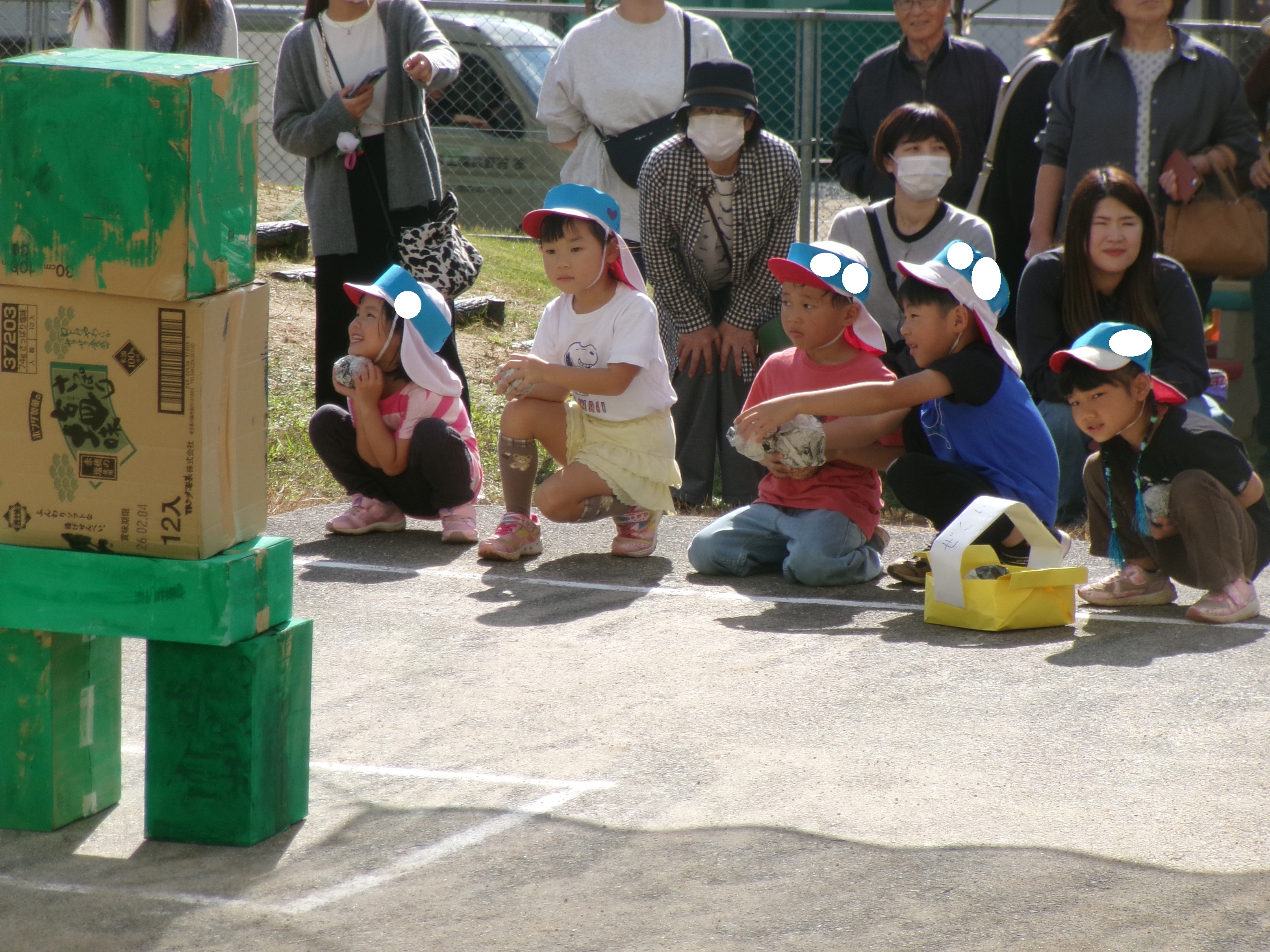 スマイルフェスティバルでどんなことがしたい?とすみれ組で話し合うと、「モンスターをたおしたい!」という声が多く、チームごとにモンスターをボールで倒すことに決定!毎日どうダンボールを積み上げるか、ボールをどう投げるか話し合う子ども達。本番では協力してモンスターを倒し、笑顔で楽しんでいました!