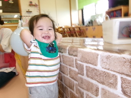 最初は風船をじっと見ていたお友だち。しばらくすると自分から手を伸ばして触って、満面の笑みを見せてくれて、かわいかったです!